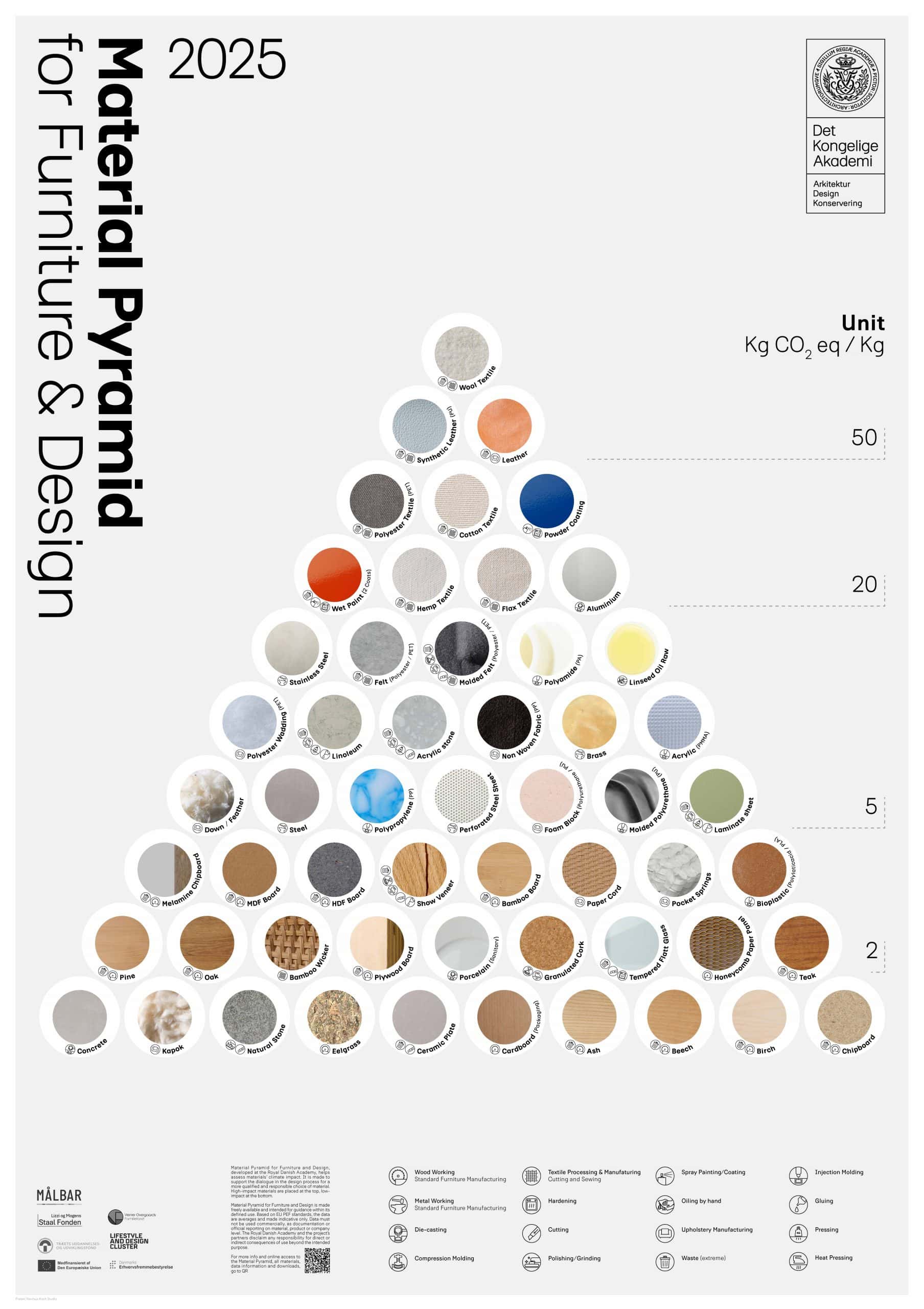The Material Pyramid for Furniture and Design has been developed in close collaboration between the Royal Danish Academy for Architecture, Design and Conservation and Målbar.