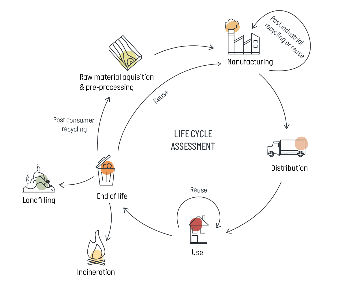 Life Cycle Assessment (LCA) is a way to estimate the climate or total environmental impact of a product or service through all its life cycle phases. The starting point for any product is raw materials that are extracted from nature. Those raw materials are then processed into a product, packaged, sold, used, maybe reused, and eventually disposed of. Through all life phases, a product has an impact on the climate, water resources, soil fertility, human health, etc. – all of which are represented by so-called impact categories. An LCA that is compliant with the Product Environmental Footprint (PEF) rules decided by the EU, considers all impact categories throughout the life cycle of a product and hereby measures its total environmental impact.