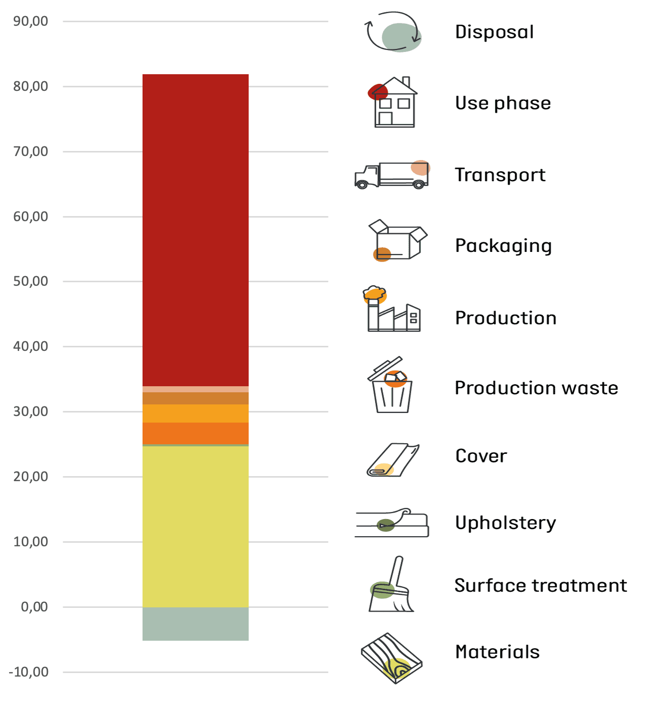 Flatpacking the product does reduce transport emissions. But for a single product, it doesn’t make an obvious impact, since the transport constitutes only a small part of the total climate footprint.