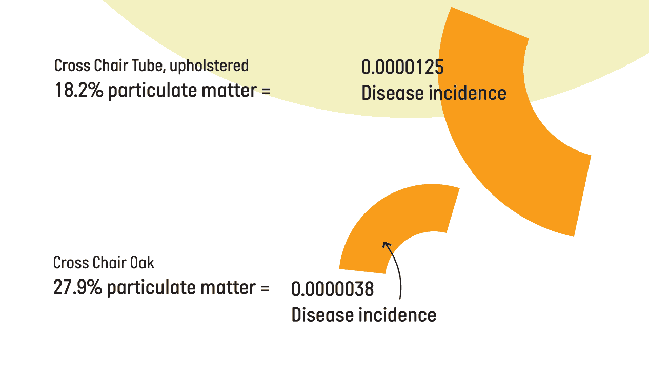 Below, you can see the Cross Chairs’ impact on three selected impact categories. We have picked these out to exemplify some of the most significant impacts that the Cross Chairs have on the environment.